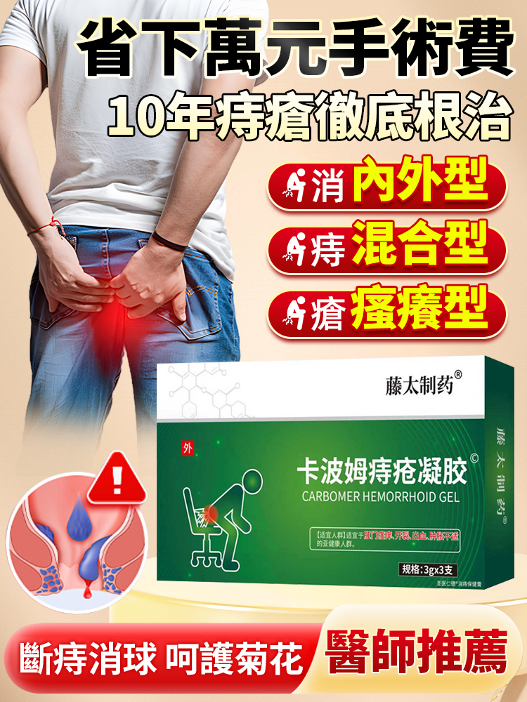 【省下萬元手術費】卡波姆痔瘡凝膠